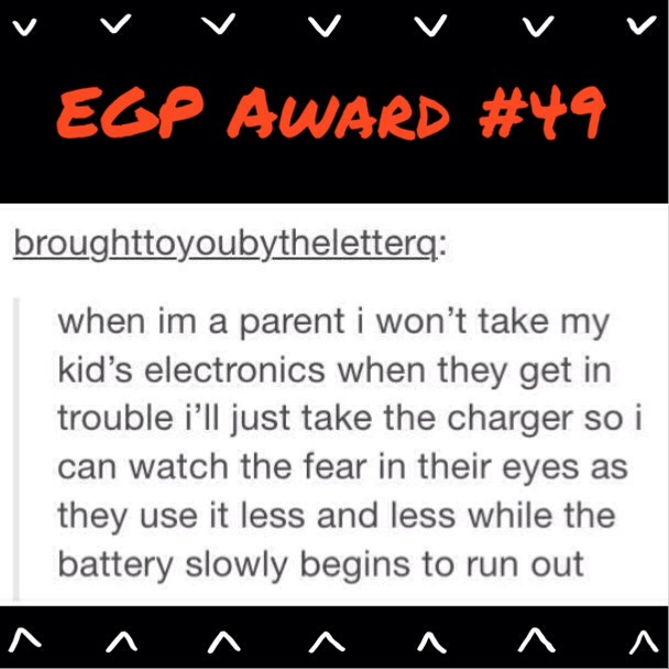 This week, I found a better punishment for my own spawnlings. And it is the winner of this week’s EGP Award: