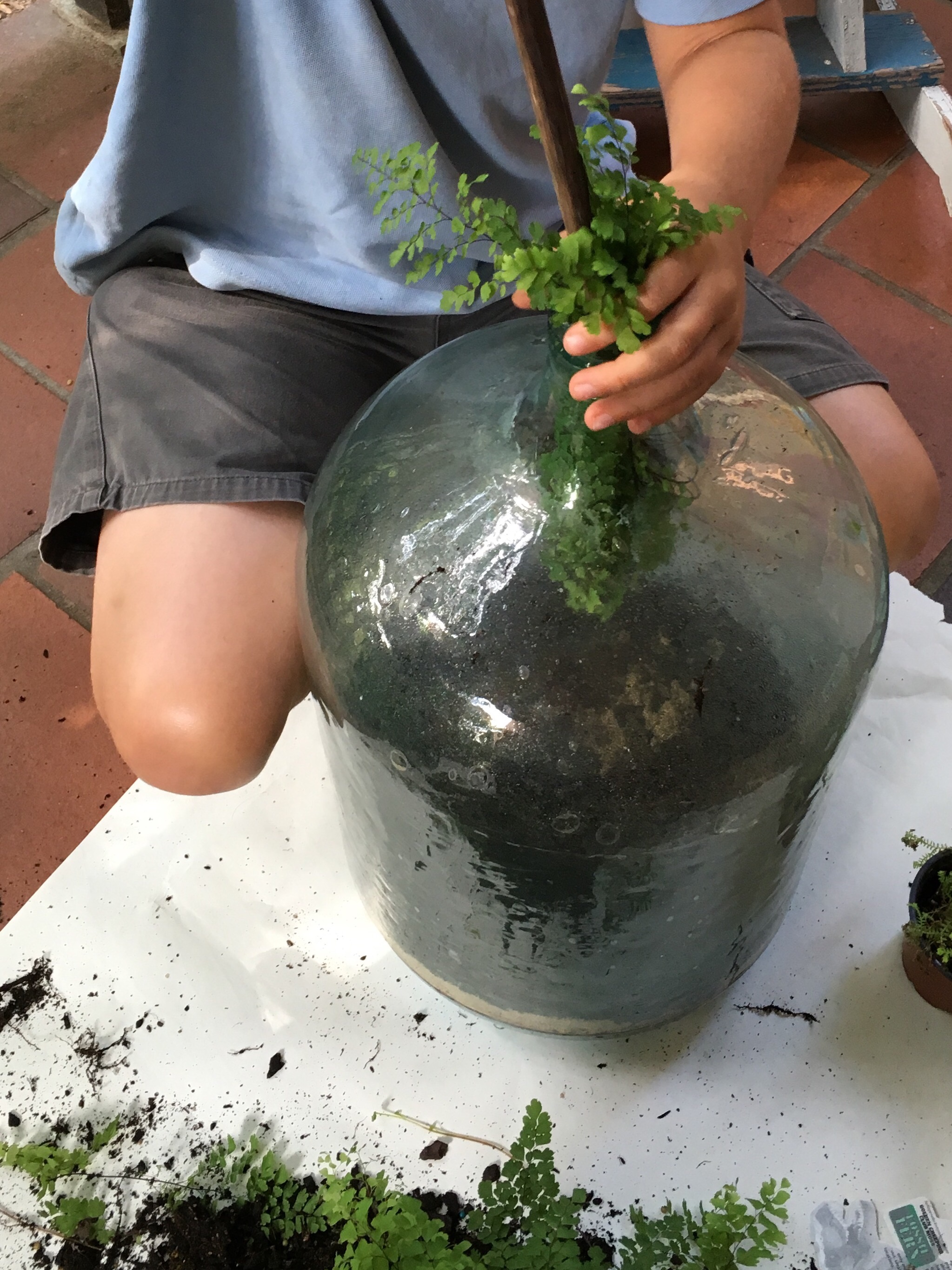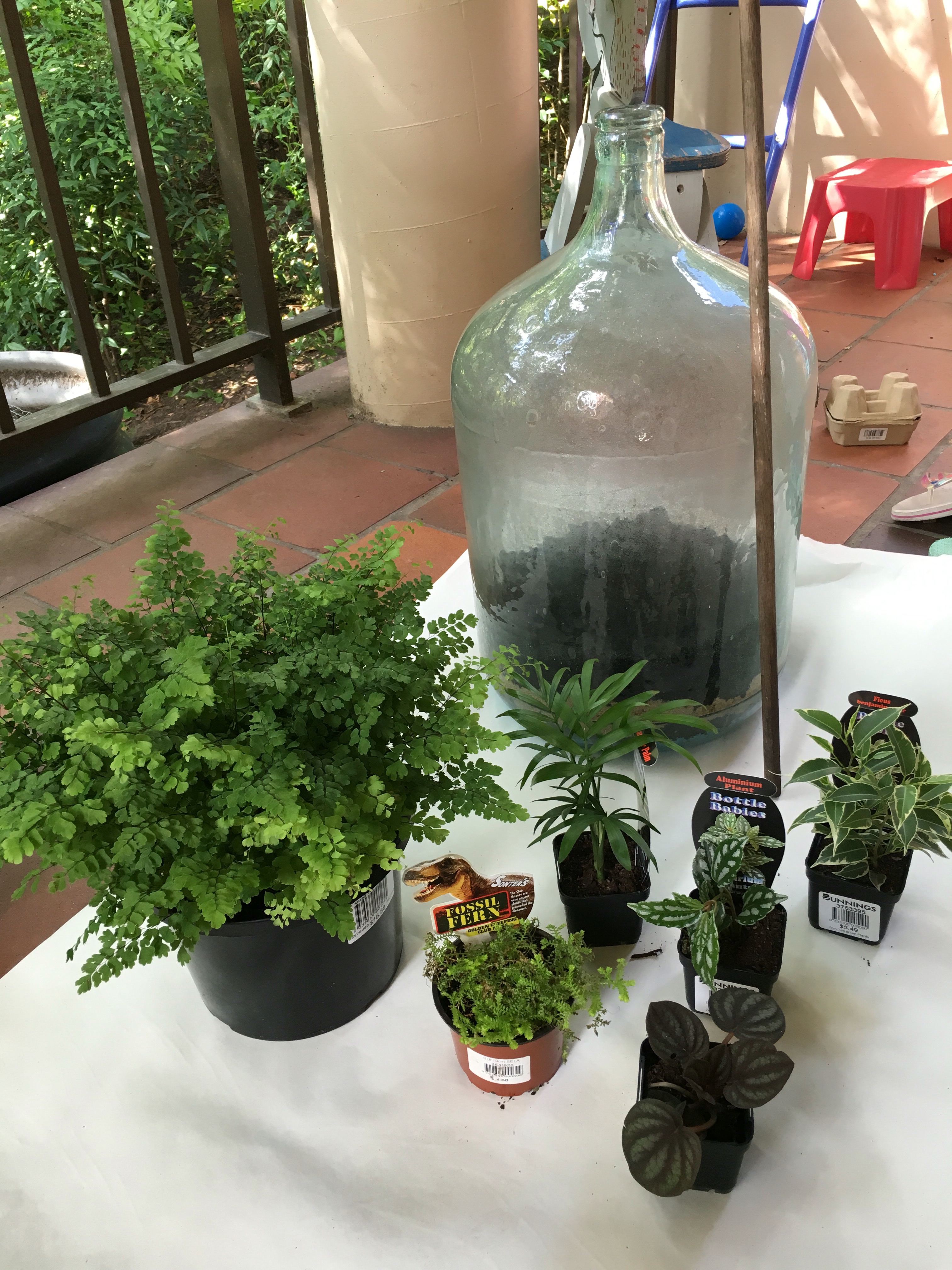 Not all of these plants are going in – and especially not all of the Maidenhair Fern! Sinister is also doing a smaller ‘back-up terrarium’ in a 3L OJ bottle with one or two of these plants.