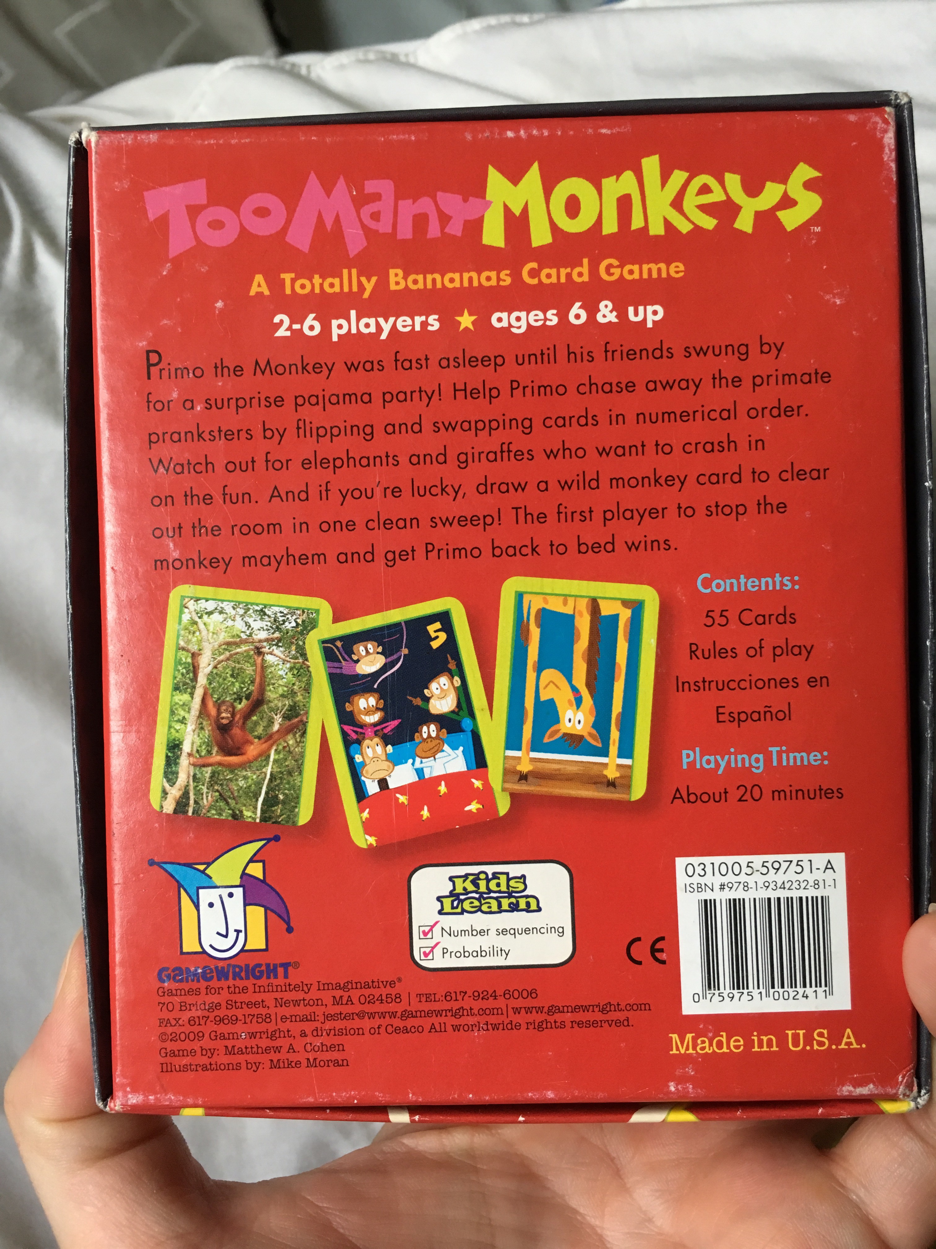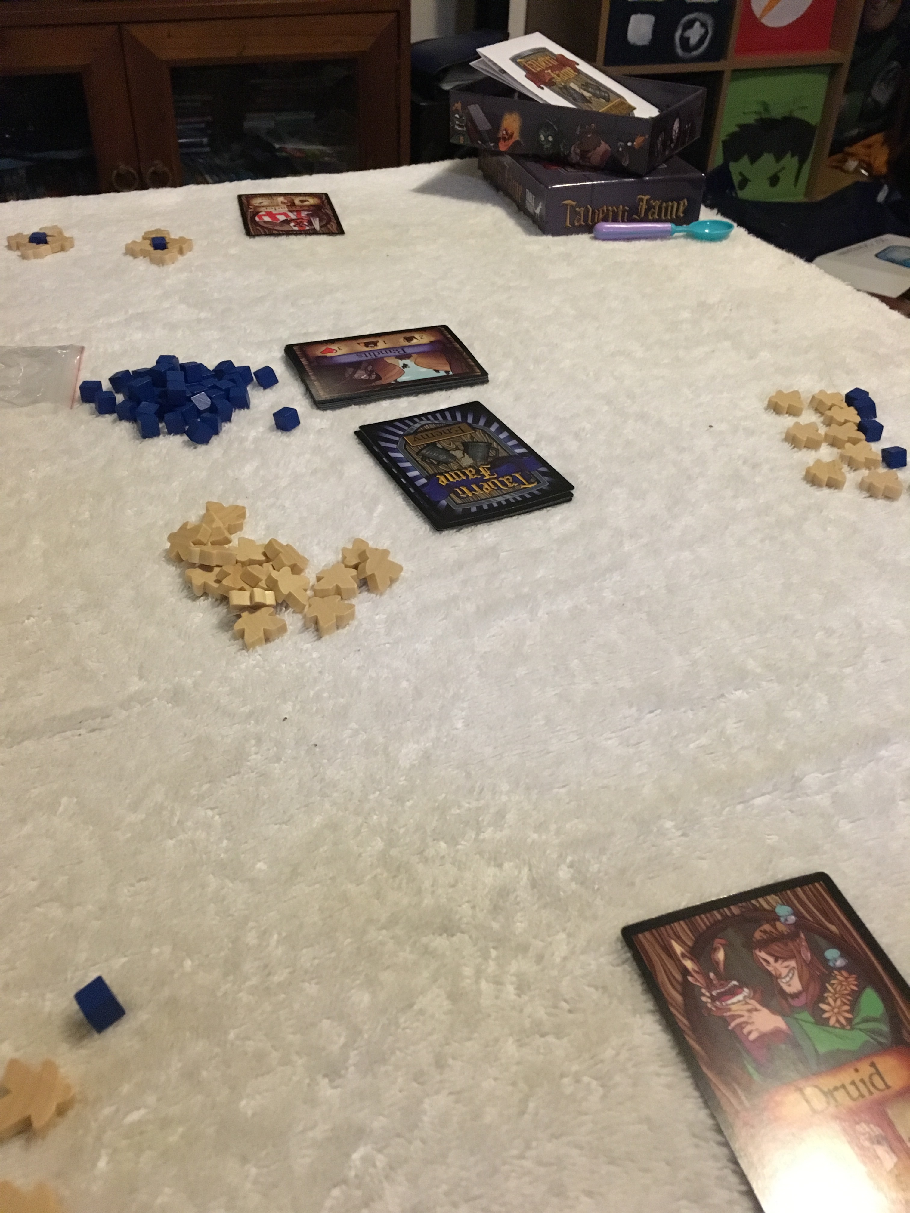 Another one 2yo Zaltu loves to play. Simple card strategy, collecting all the numbered monkeys from 1 to 6, avoiding raccoons, elephants, and giraffes. All three Spawnlings were happily playing this for 20mins at the hospital while the doc took my cast off. I keep this one on the side between Zaltu and I, while also playing one of the ‘older’ games with the others. It’s not a ‘baby game’ – I’d peg it around 3-8 years old.