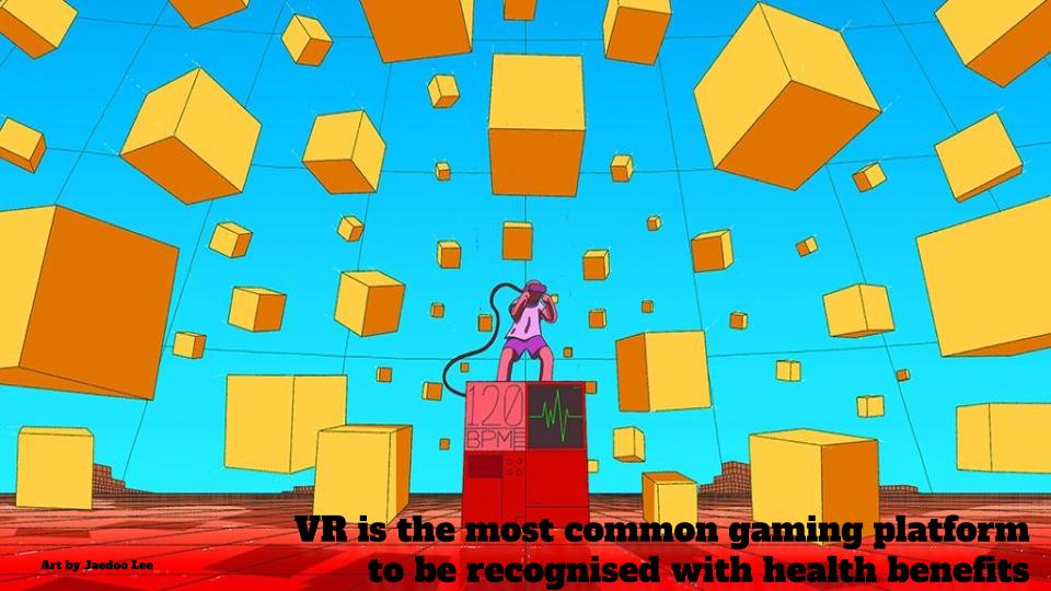 Virtual Reality is the most common gaming platform to be recognised as providing health benefits. There are amazing medical studies taking place right now, looking at the benefits of VR for dementia patients, physical therapy, and brain injuries such as stroke or trauma. It is now the most prevalent example given when showing how gaming can be good for you and subsequently the easiest example to see and give to make the point. Part of the appeal is the potential for VR to help patients recover lost physical abilities, with games specifically designed for rehabilitation.