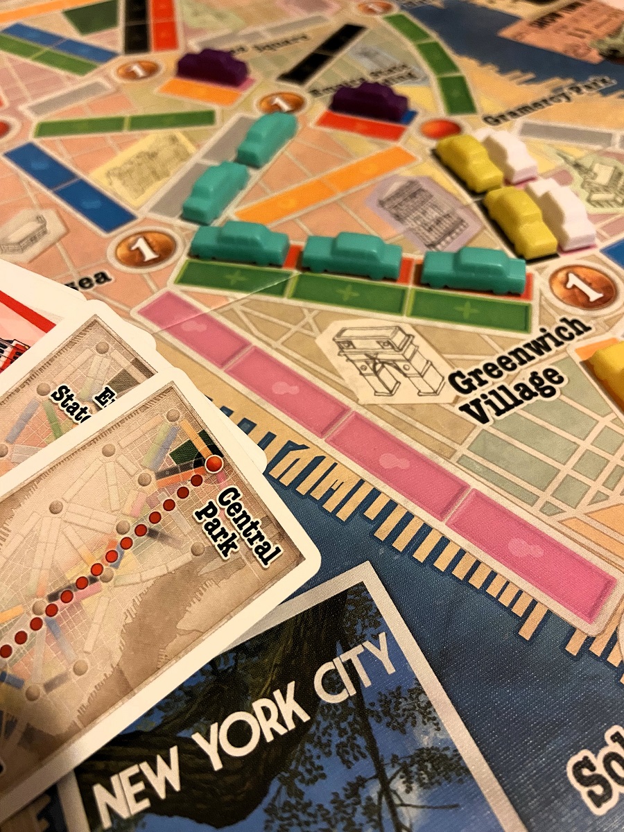 The box says “ages 8 and up”, but I know many families who have played the original version with kids as young as five (5) by simply removing the more competitive nature. It’s fairly easy for kids to pick up the colour-matching aspect. However, those outside the USA may struggle a little with the map. An added bonus for families is the allowance for up to five (5) players, giving a bit more space for a slightly larger family or at least when a newbie/guest comes to visit.
