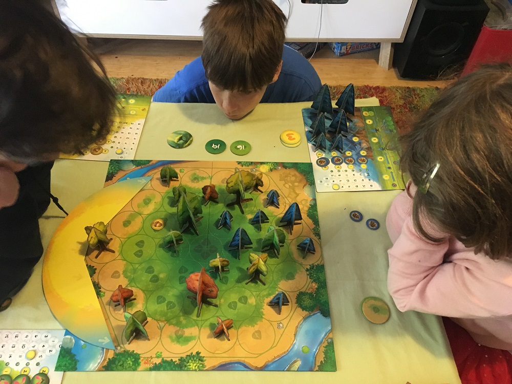 The game is gorgeous, in part thanks to the publishers Blue Orange and how they brought the visual cues to life. I especially love how the sun moves around the board, provoking more thought about the interaction between your trees and those around you. Restoration and reforestation are essential, but like Photosynthesis, it requires a bit more consideration than randomly scattering seeds around.