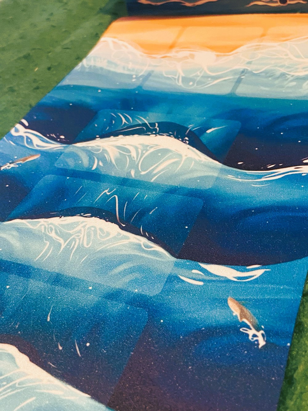 A quick chat on the game components: The mat itself is made from neoprene, making it durable and quite beautiful with the printing. However, it really needs to be aired out the first time you play it.