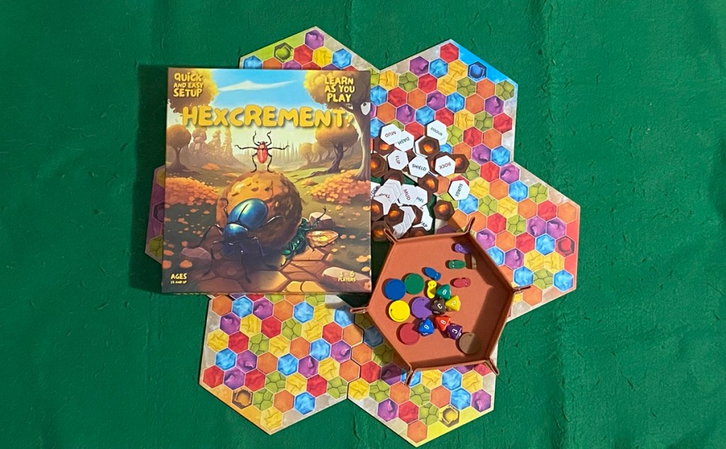 It’s time we had a serious discussion about poop. Or at least about the importance of dung beetles. These little guys don’t get enough credit for shoveling s…. Stuff all day long. It’s about time they were given some love, and what better way than their own tabletop game: Hexcrement!! When Aelytra Conservation told me about their new game, I was immediately drawn in by their passion for both games and science. It sounded chaotic, fun, and different. Most of all, it sounded like the kind of game to play with equally chaotic and entertaining friends. This is the kind of game you can pull from the shelves and play after dinner. It doesn’t require great set-up, explanation, or world-building. It does elicit discussion, laughter, and random facts that lead to greater conversations. Most of all, Hexcrement fosters the same enthusiasm and joy that emanates from its designers. And if Marcela and Paul can build that momentum into more educational games like Hexcrement, than I am looking forward to their very bright and colourful future.
