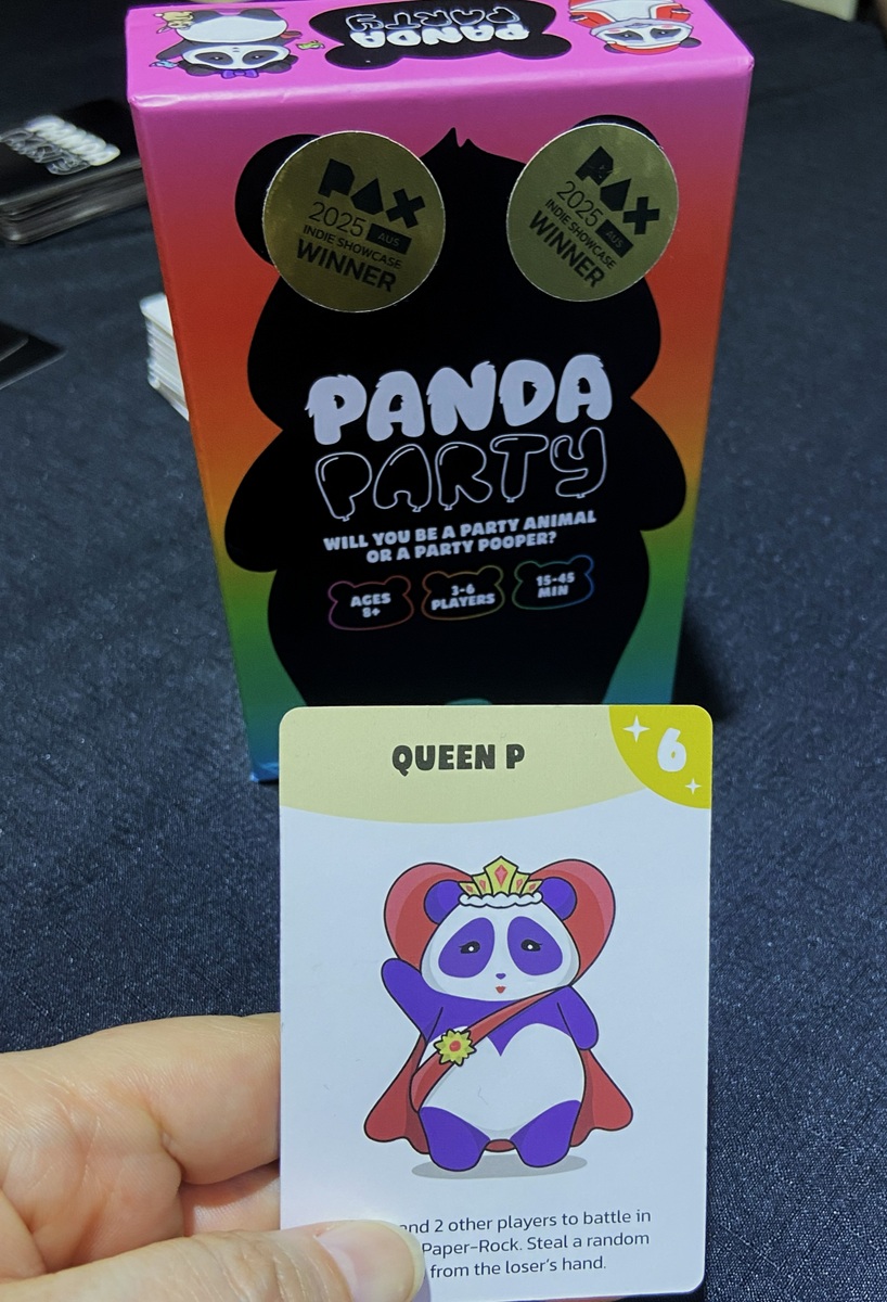 Another treasure found at PAX Aust 2025, drawing a crowd in the highly admired PAX Indie Showcase section. Panda Party is created by the team at Cheerfolk, based in Canberra (Australia), inspired by their collective love for party games. It combines set collection and hand management with additional deck intervention and ‘take that’ maneuvers. Panda Party shows up with moderate gameplay lasting anywhere from 15 to 45 minutes, depending on how strategic/destructive you play. The box says 8 years and older, though I expect experienced 5-year-olds will easily kick butt. The base game suggests 3-6 players, though I have found the sweet spot to be 5 or 6; it is definitely a more-is-better kind of game. There are additional booster packs to add to the fun, but more on those later.